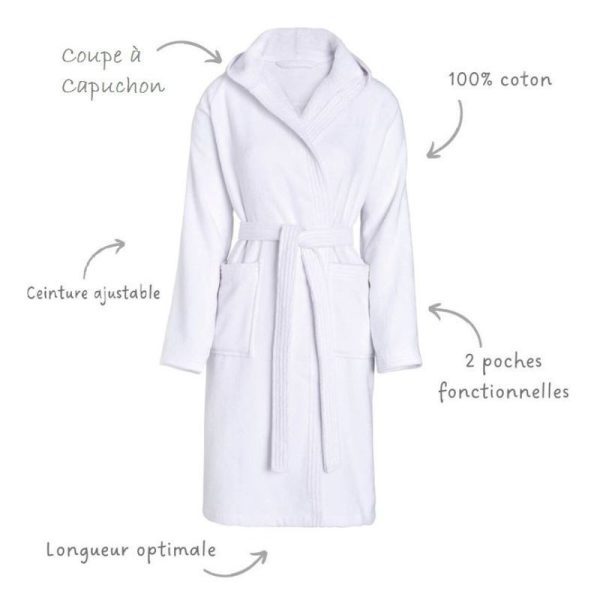 Peignoir de bain à capuche 100% coton