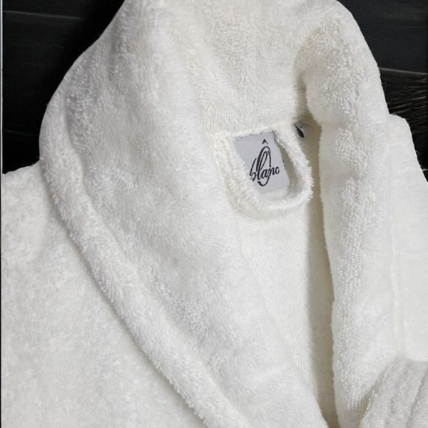 Peignoir de bain bouclette col châle 100% Coton Blanc – 500gsm