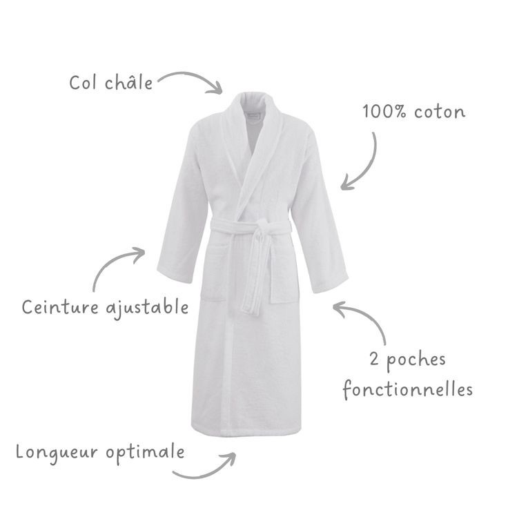 Peignoir de bain col châle Velours 100% Coton – 360gsm – Blanc