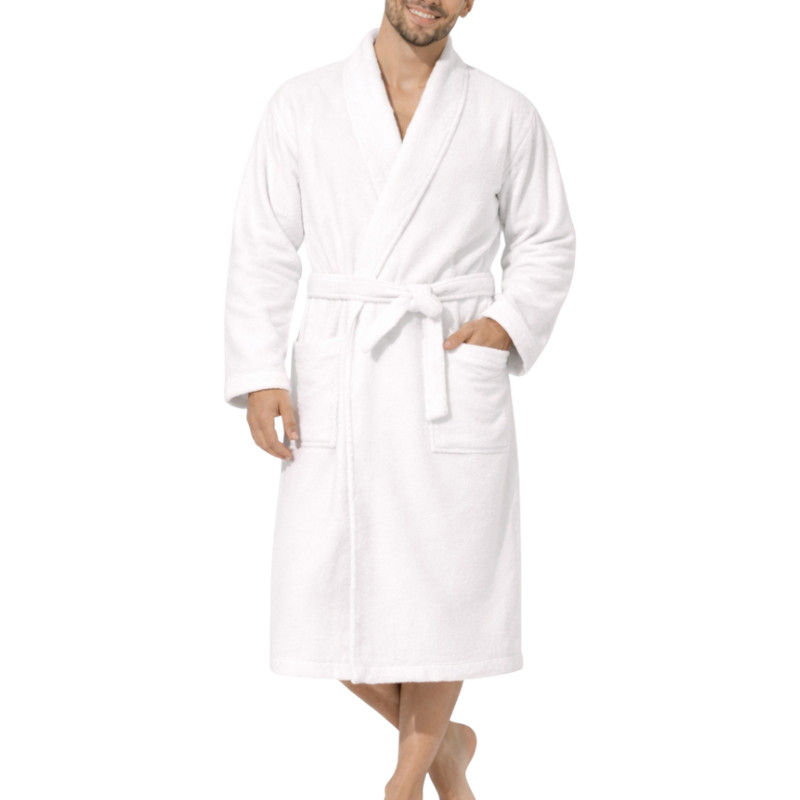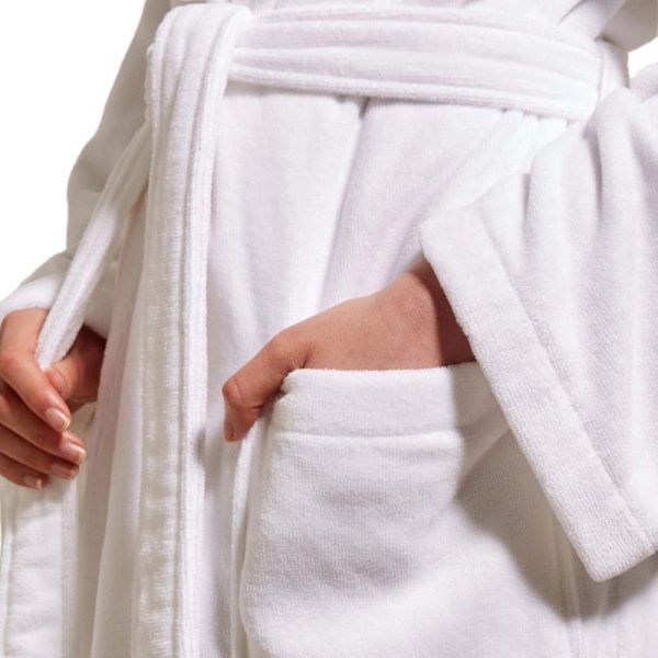 Peignoir de bain col châle Velours 100% Coton – 360gsm – Blanc