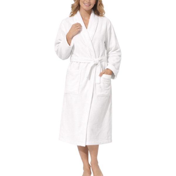 Peignoir de bain col châle Velours 100% Coton – 460gsm – Blanc