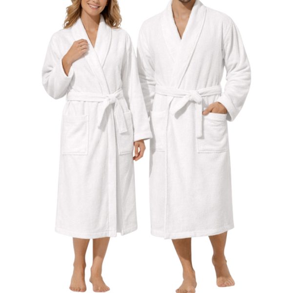 Peignoir de bain bouclette col châle 100% Coton Blanc - 500gsm