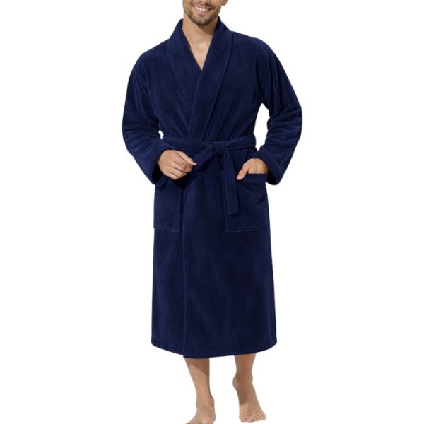 Peignoir de bain col châle Velours 100% Coton – 460gsm – Bleu Nuit